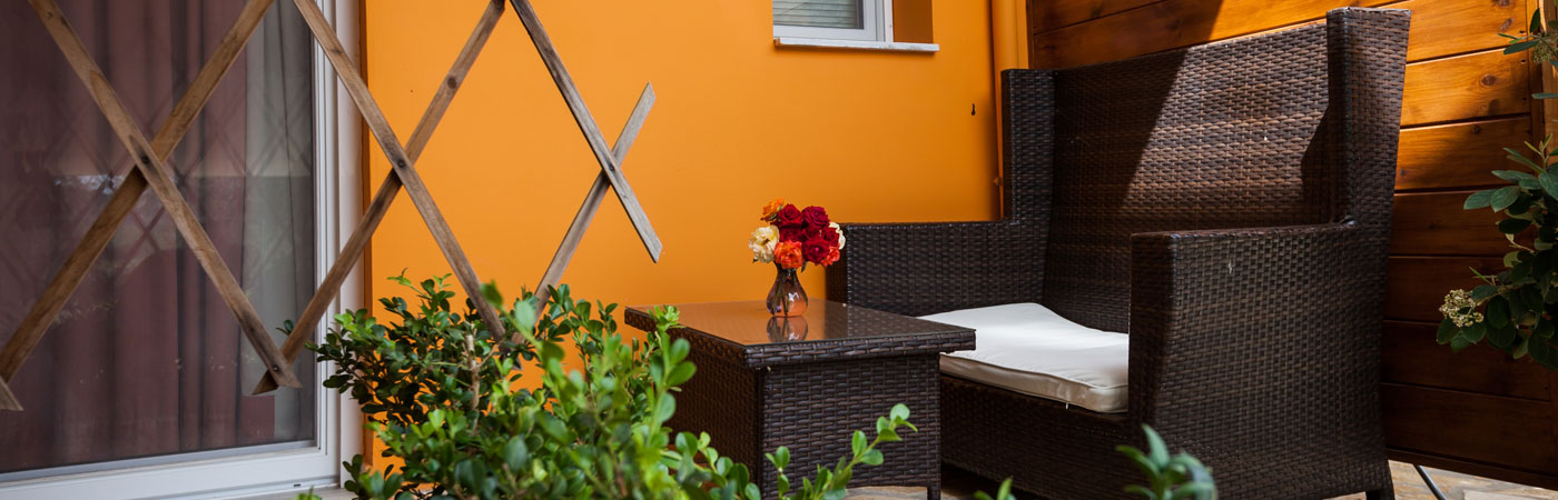 Γύρω μπαλκόνια επιπλωμένα με μπαμπού